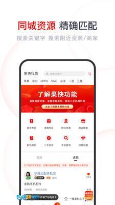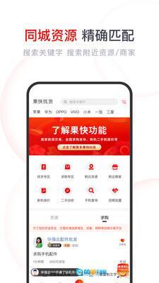 2、在果快找货平台里,用户能够借助关键字搜索的方法,查找周边的资源或是商家。