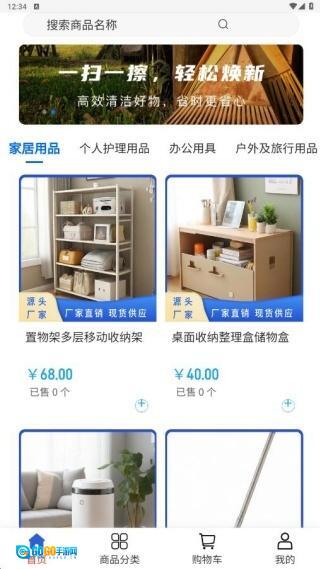 1、完成安装后进入首页,能看到品类丰富的产品推荐,还可体验商品搜索功能。