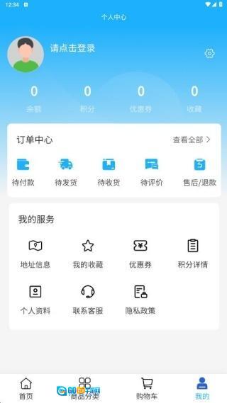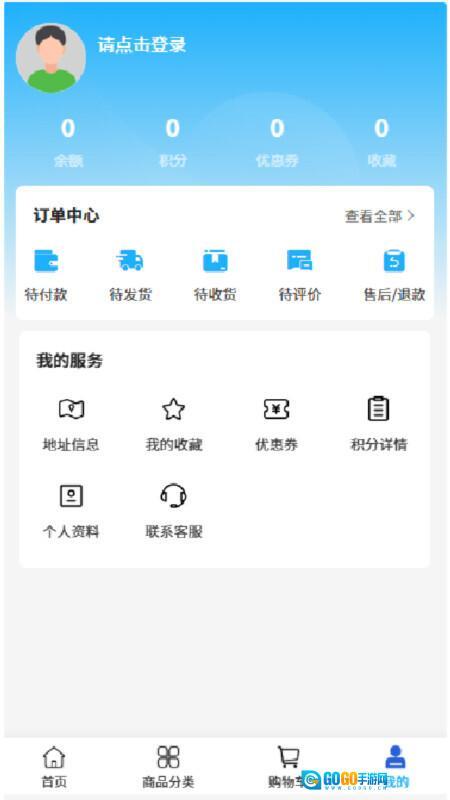 4、在“我的”页面中,除了提供登录服务外,还设有订单管理、收货地址管理等功能服务。