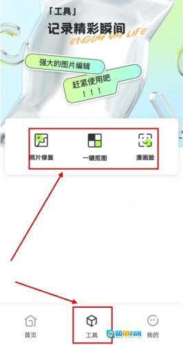 1、首先点击下方的【工具】界面,随后挑选要使用的功能并点击进入;