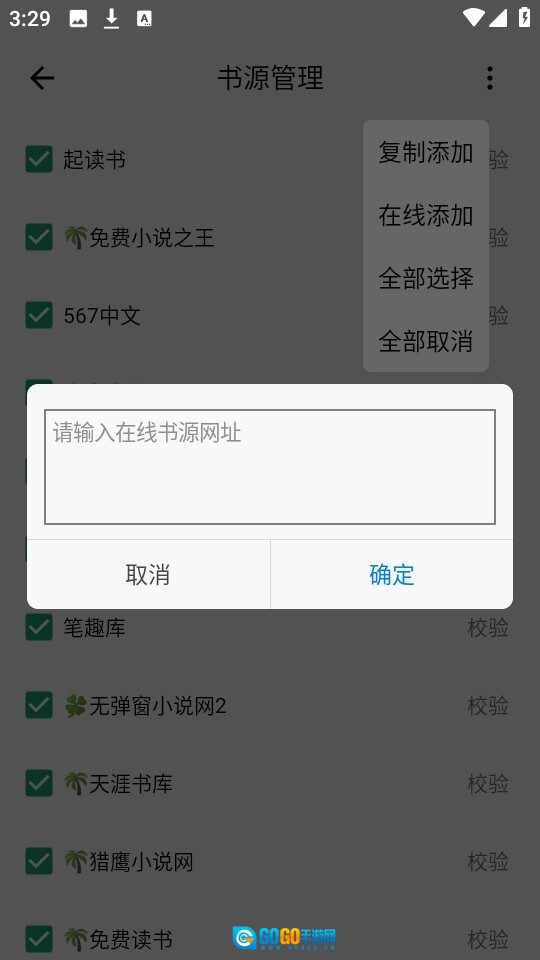 5、正确输入在线书源网址即可。