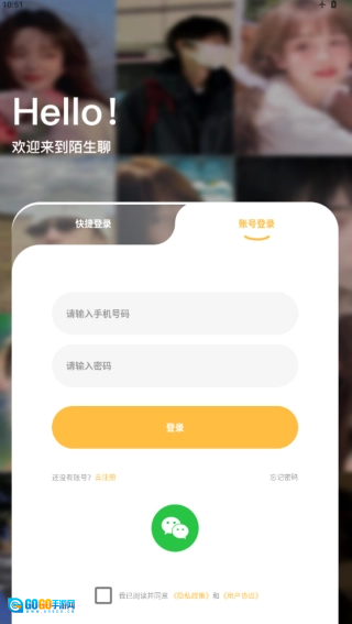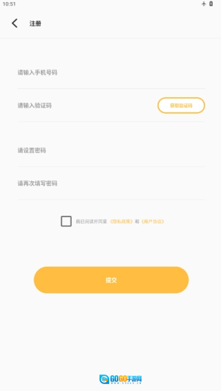 点击注册账号,选择用手机号进行注册,填写手机号后获取验证码;