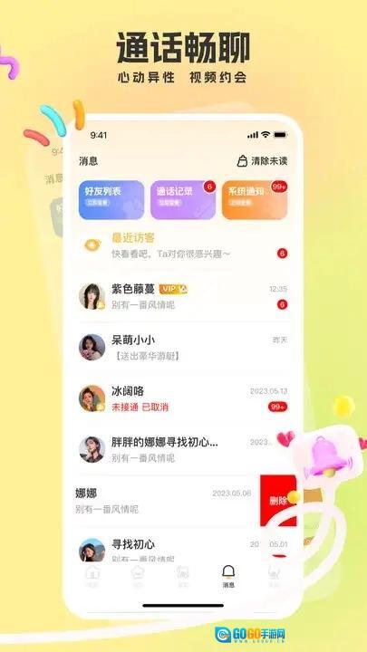 陌生聊是一款能随时开启甜蜜交友的手机应用,无论何时有聊天需求都能即时满足,互动社交可实时开展,恋爱互动也更便捷。它会精准推荐你可能喜欢的异性好友,还能帮你认识更多附近的人。平台支持实名认证,确保聊天互动的真实性,在线探讨各类话题都毫无问题。