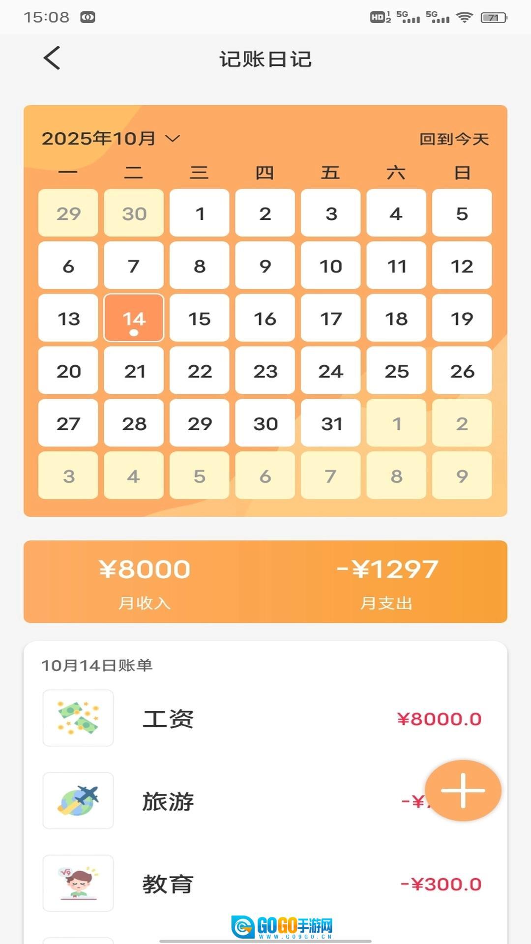 可以实现每日收支的记录功能,还能对月度收入与支出进行统计,包含丰富的收支类别选项,让财务状况一目了然。