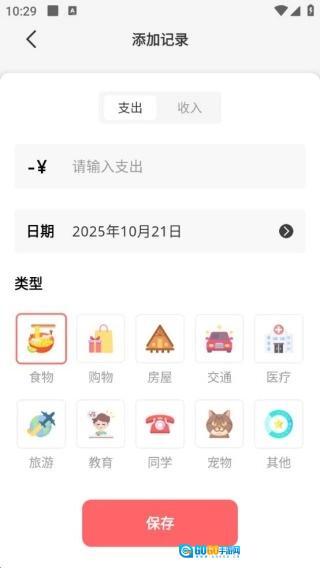 点击“添加”按钮,即可添加消费记录,无论是支出还是收入,都能进行详细记录。