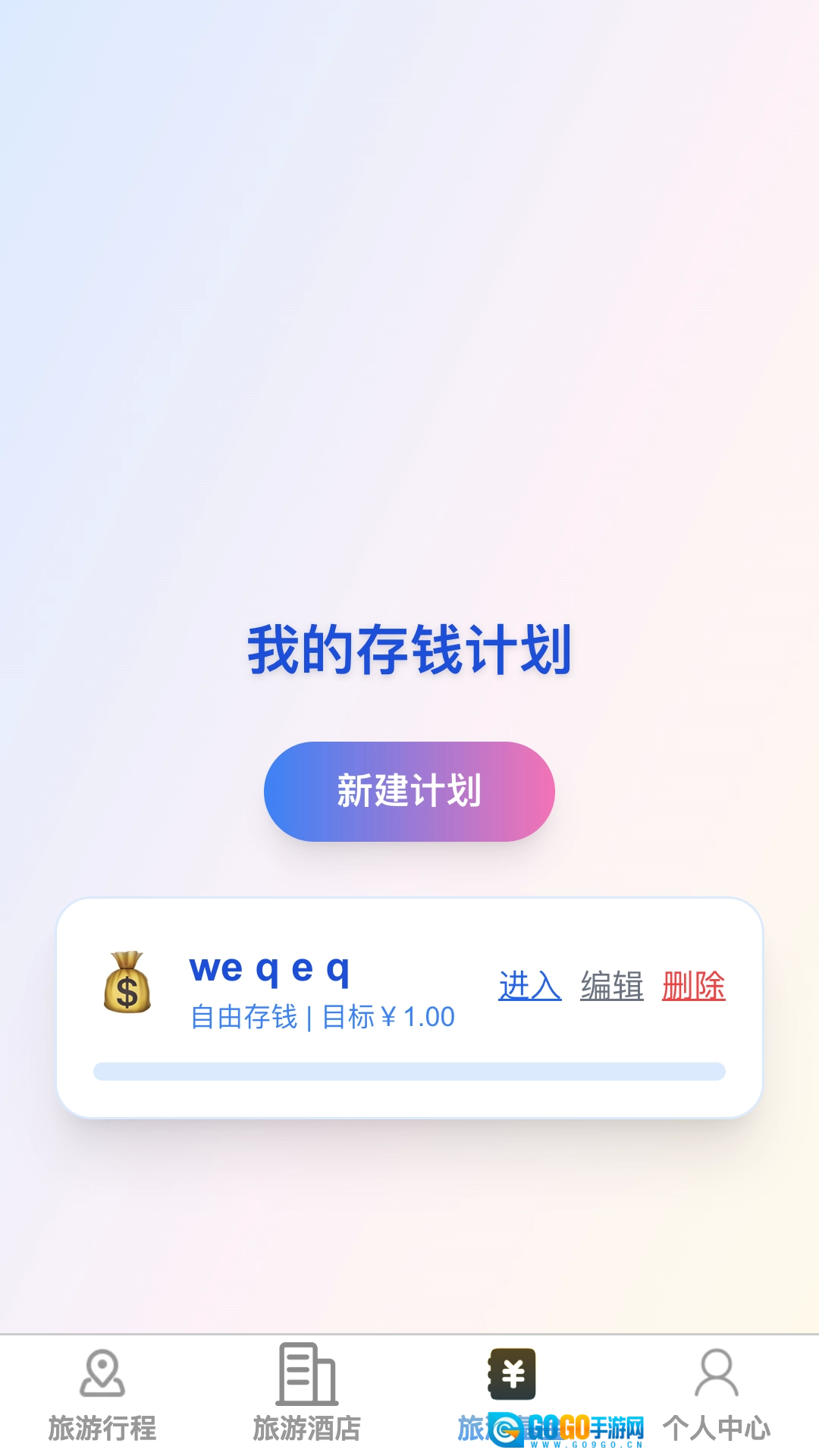 可以对存钱计划执行进入、编辑、删除等操作,以此管理旅游储备资金。