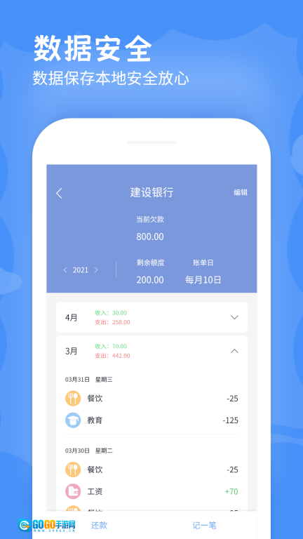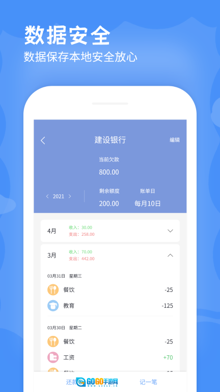 手机记账本App是一款能高效记录收支的记账工具,它具备收支明细查看、数据分析、资产管理以及数据安全保障等多种实用功能。用户可以随时在线完成记账操作,每一笔账单都会被清晰记录下来,这样就能让大家随时随地掌握自己的资产状况,帮助大家更快实现财务自由,赶紧用起来吧!