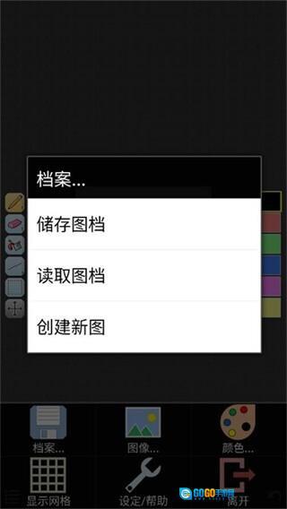 1、在本站安装并打开isopixpro像素小画家后,先点击界面左下角的【菜单】图标,接着在弹出的选项中选择【档案】,再点击【新建图像】选项,即可创建出一个新的绘画画布。