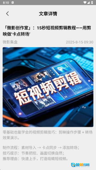 我们提供种类丰富的微小影像教程,内容覆盖手机摄影、短视频剪辑技巧等方面,帮助用户掌握创作的核心要点。