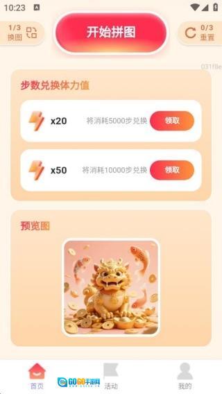 4、用步数兑换体力后,就能点击开始拼图,让你的每一步都能转化为实实在在的内容。