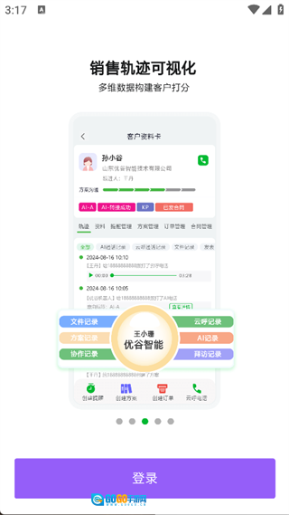 优谷智能Scrm是一款融合客户关系管理与销售管理功能的智能软件,致力于助力企业优化客户关系、提升销售效率,达成精准营销与高效转化的目标。借助该软件,企业能够便捷地管理客户基础信息、交易记录及沟通历史,同时实时掌握销售指标数据,清晰追踪销售流程的各个环节。它不仅支持客户信息的直观查看与管理,还配备智能电话拨打功能,帮助企业实时维护客户关系,轻松推动成交转化。推荐有相关需求的用户选择使用。