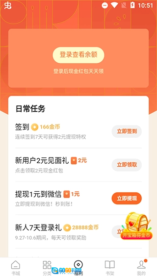 阅读书籍就能免费获取现金奖励,连续登录七天还能领取28888金币,使用这些金币后就能解锁现金福利推荐资格。
