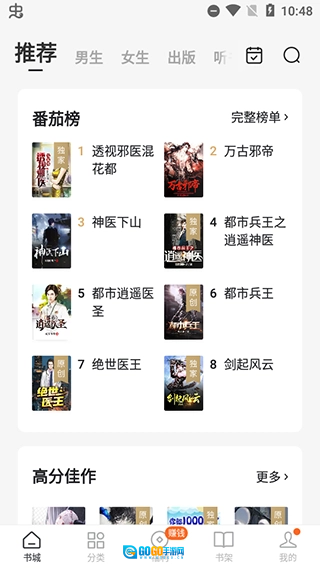 我们为用户推荐当下热门小说,同时设有男生、女生、听书等多个分类板块,以此满足不同用户对于小说的多样化需求。