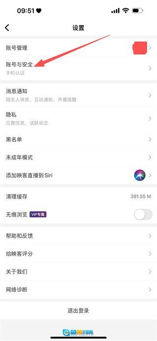 3、进入设置页面后,找到并点击“账号与安全”选项,即可进入账号安全页面。