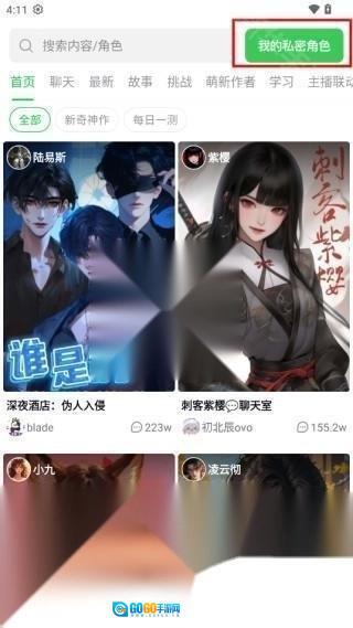 进入软件,点击右上方的“我的私密角色”;