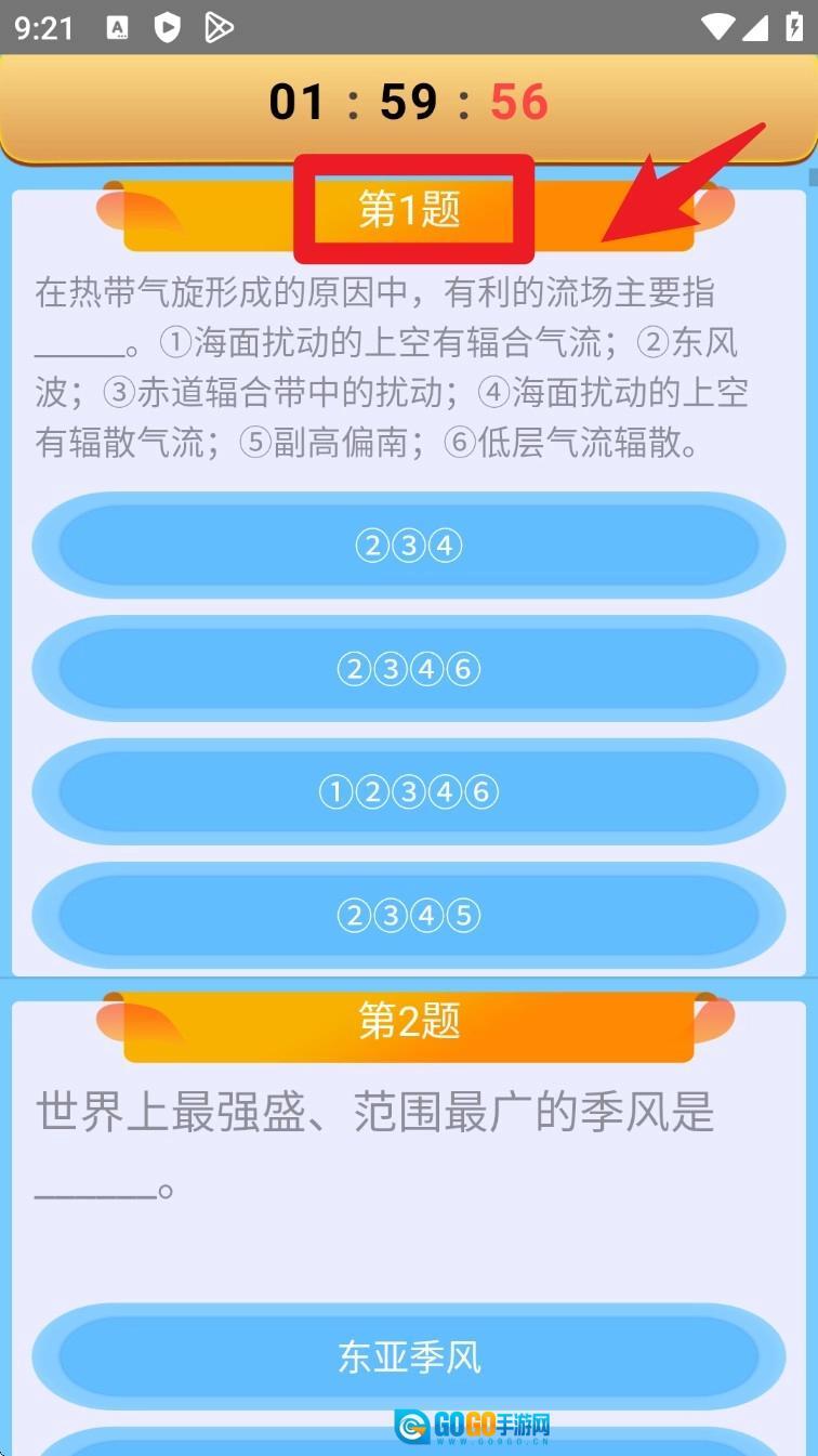 答题过程中题目编号醒目呈现,各选项分布清晰明了,用户能够逐题选择答案,并且可以实时查看倒计时。