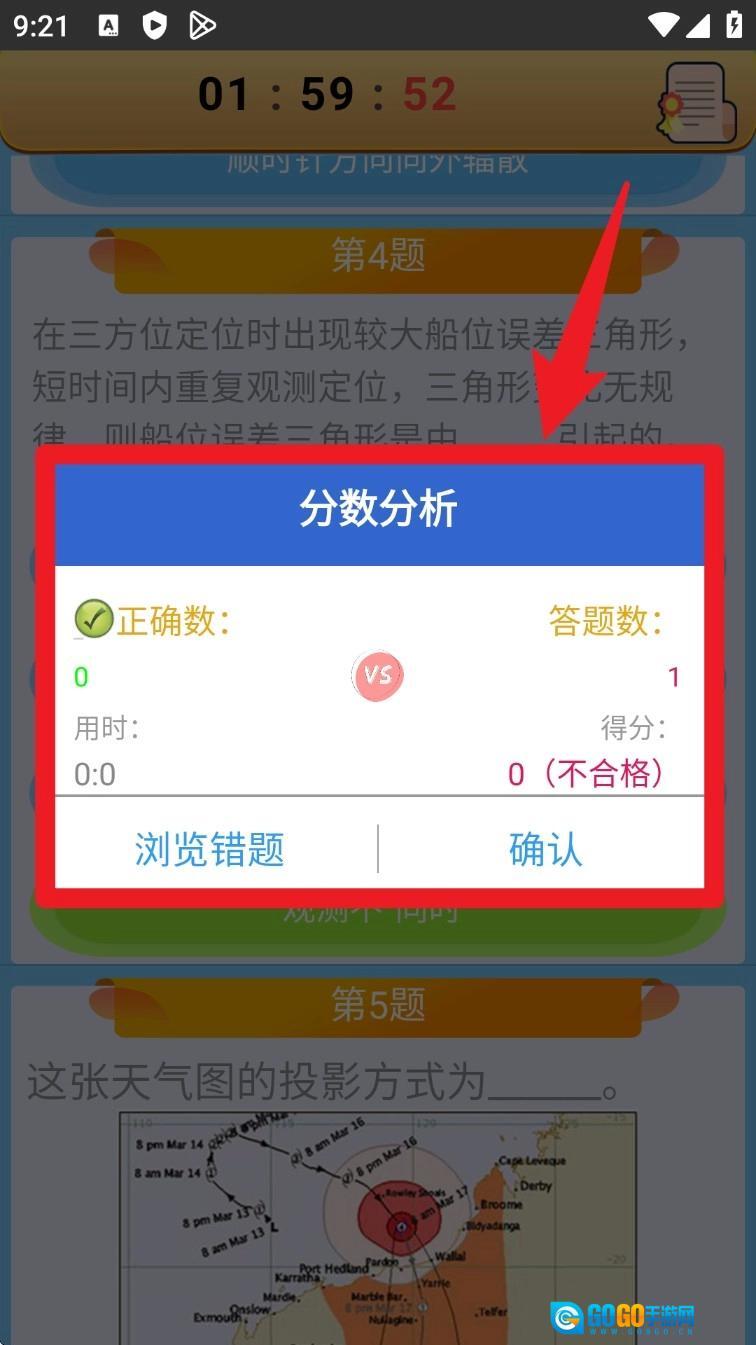 答题结束后会弹出分数分析窗口,显示答题数量、正确答题数量和得分详情,同时支持点击跳转查看答错的题目。