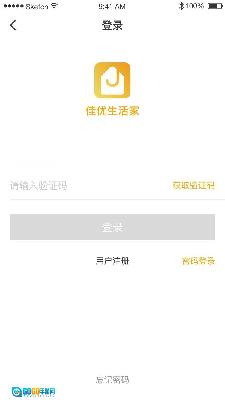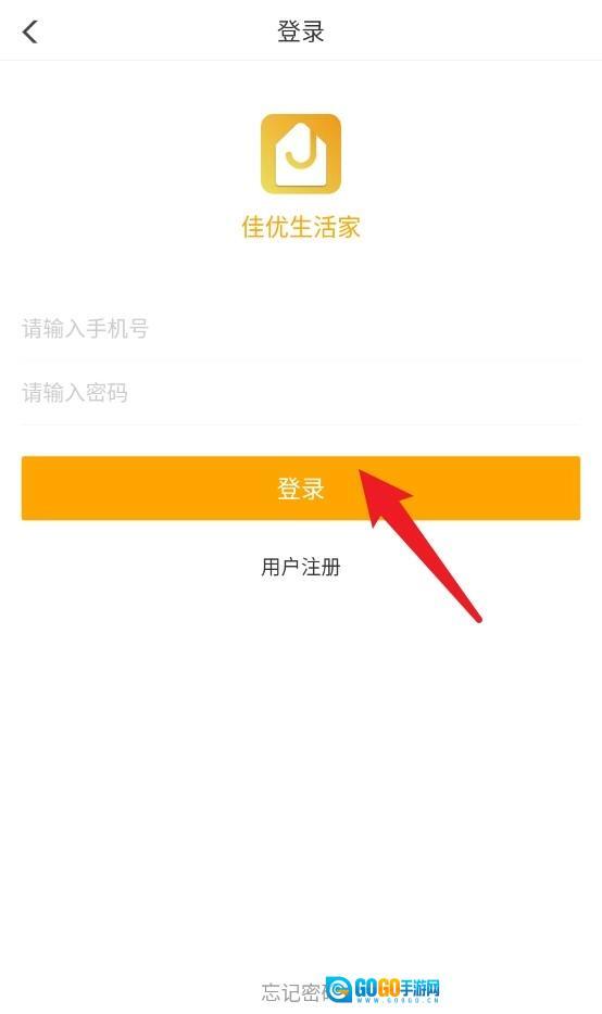 打开“佳优生活家”应用程序,输入手机号码和密码,点击登录按钮后进入系统首页。