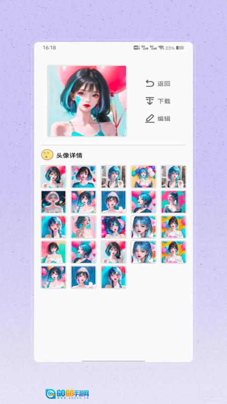 在头像详情页,用户可以进行返回、编辑等操作,便于管理已有的头像资源。