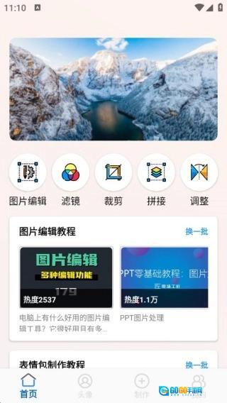 首页提供了丰富多样的工具,你可以用它们来裁剪图片、添加滤镜,还能进行拼接操作。