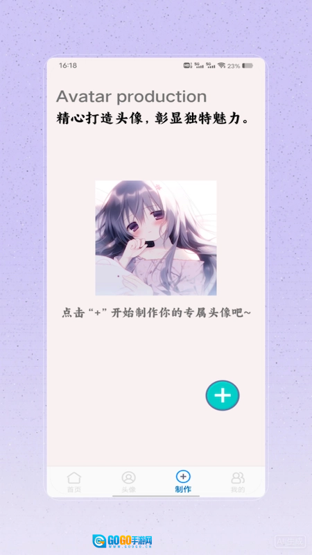 用户可以点击+号开启专属头像的制作流程,挑选图片后添加各类元素,打造出具有个人特色的头像。