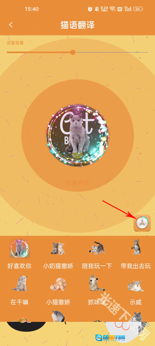 2、点击进入页面,选择你想要对萌宠表达的言语;
