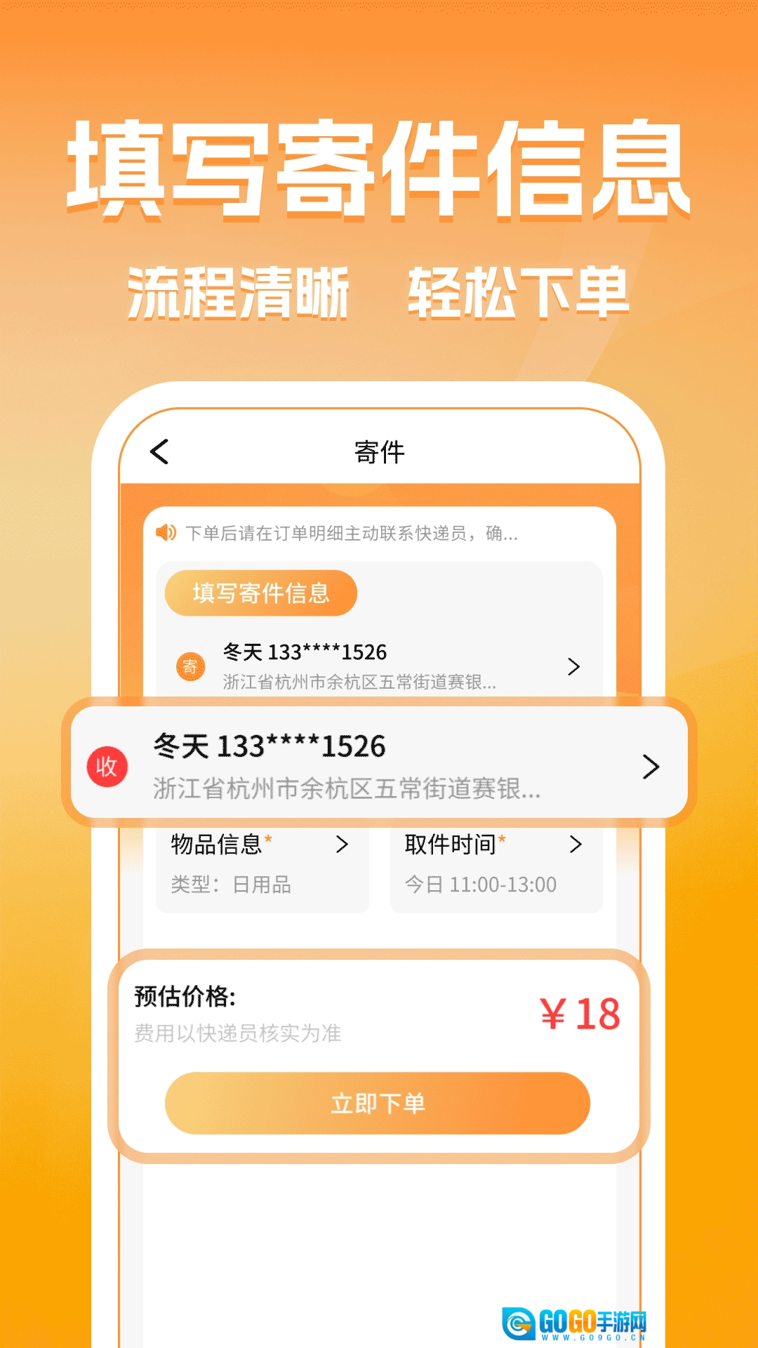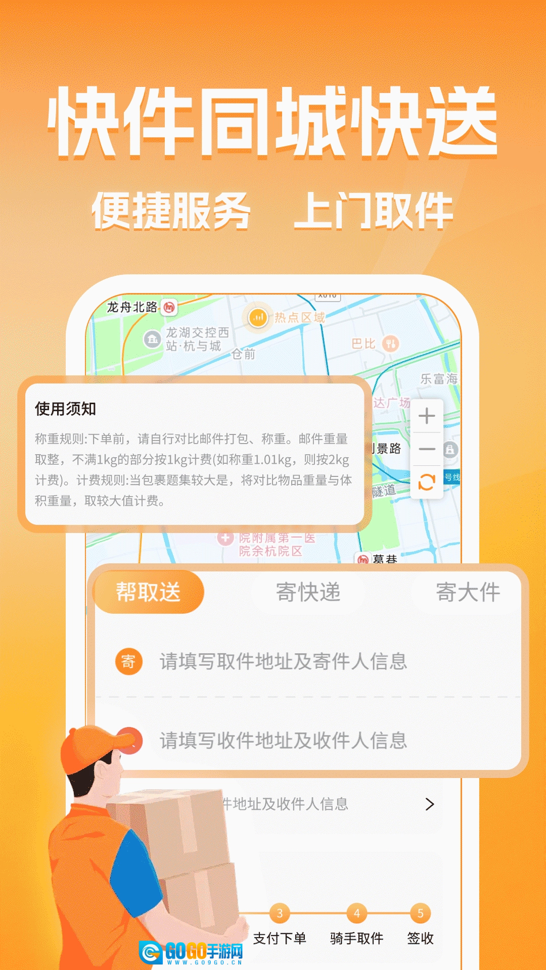 同城跑腿快送达软件是一款主打同城快递跑腿寄送服务的手机应用,还整合了跨省寄件功能,能满足用户在不同场景下的寄件需求。用户只需填写详细的寄件信息就能轻松下单,软件支持上门取件,还可实时查询物流状态、管理订单,并且能预估快递费用,为用户提供一站式的寄件服务方案。