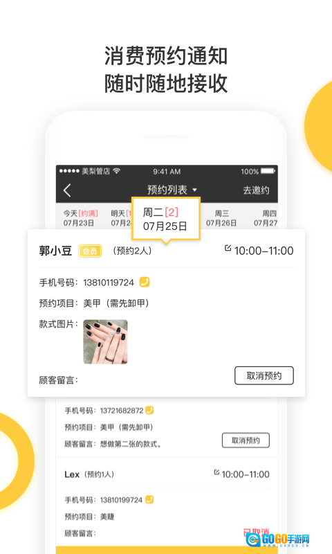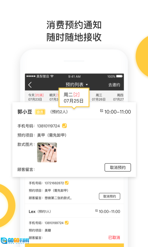 2. 此外,用户能够在线查看每日预约顾客的人员信息,以便更合理地安排工作。