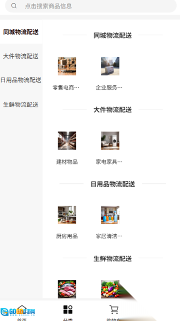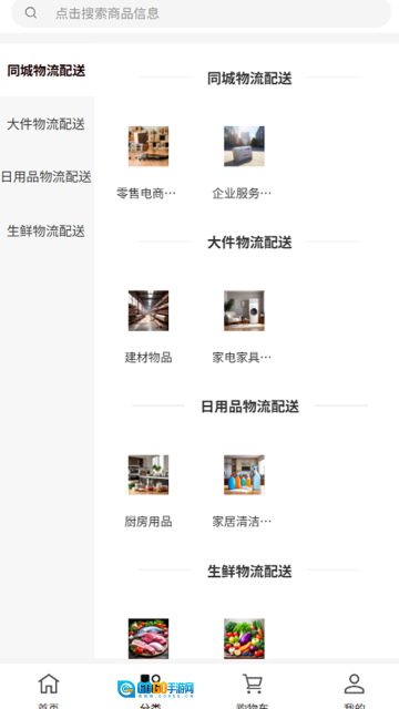2、分类板块中包含多种不同的物流配送分类选项,用户可根据自身需求自由挑选。