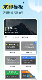 3、打开相机拍摄照片,或是从相册里导入照片后,只需一键点击水印选项,就能快速浏览并挑选模板,也可以直接进入自定义编辑界面。