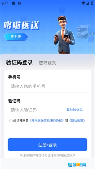 支持验证码登录,输入手机号获取验证码完成登录;