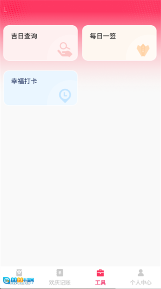 4. 点击页面下方的“工具”选项,就能看到吉日查询、每日一签和幸福打卡这几项功能。