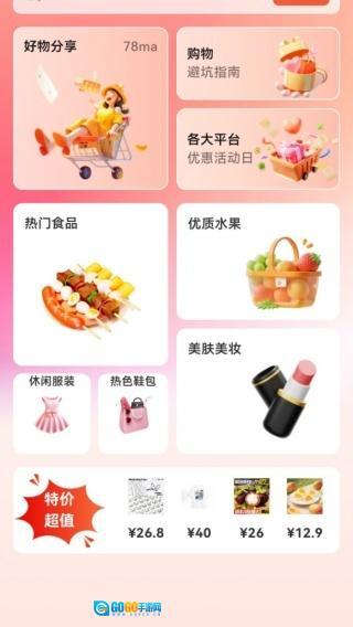 2、超值低价界面有好物分享,购物避坑指南等分类。