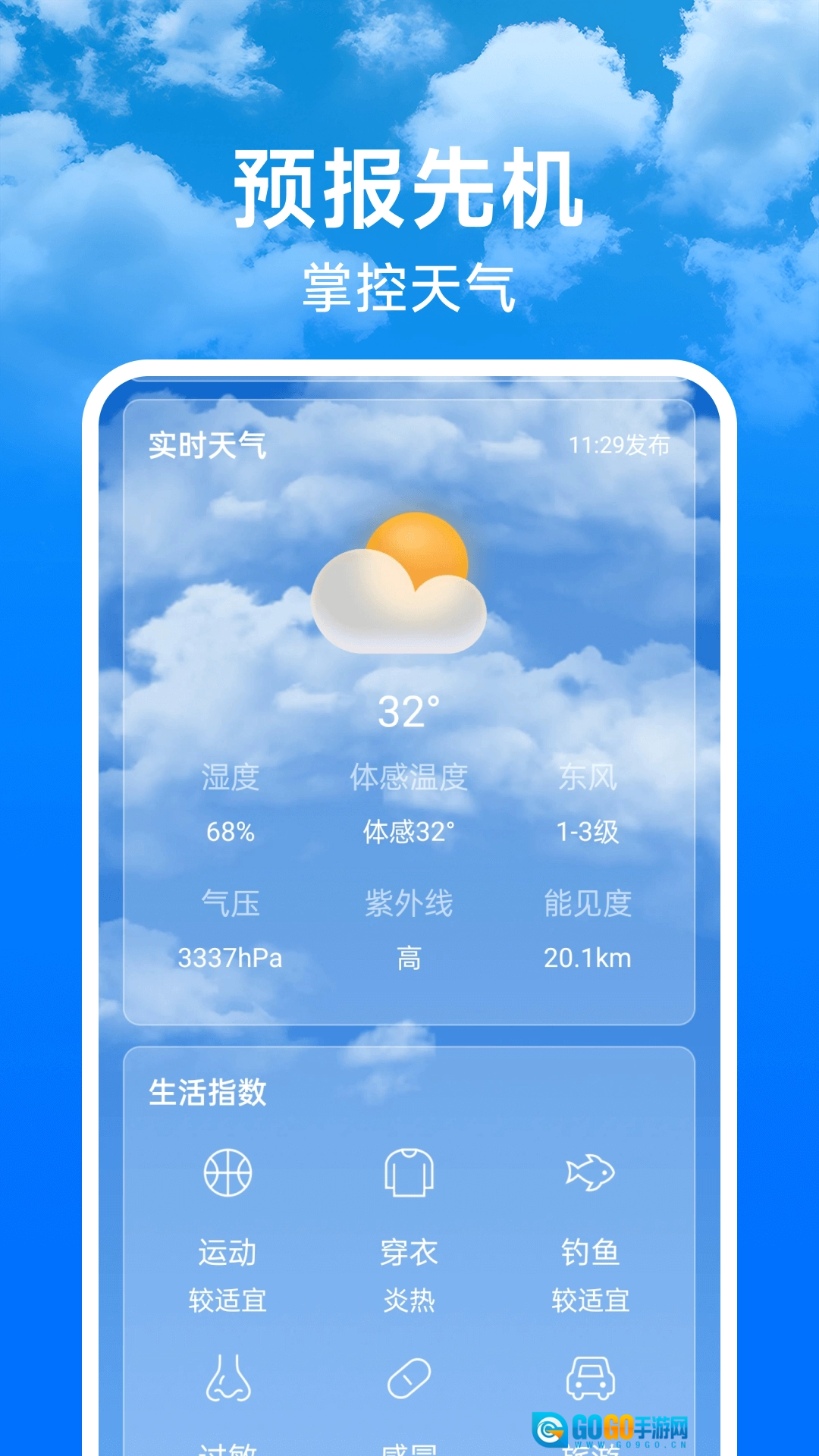 天气预报未来报是一款融合实时天气监测与智能生活服务的综合性天气应用,凭借精准全面的天气信息和贴心的生活服务功能,成为用户应对天气变化、规划美好生活的可靠帮手。