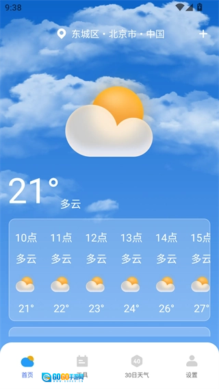 可以实时更新每小时的天气变动情况,包含温度、降水概率、风速、紫外线强度等重要数据;