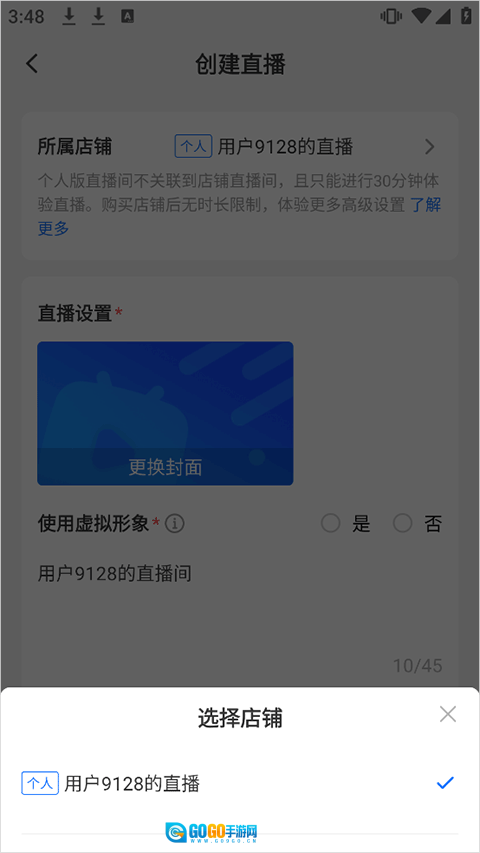 4、添加店铺后,可先设置相关直播属性,随后就能创建直播了