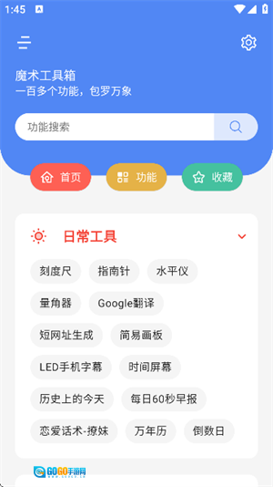 魔术工具箱是一款集成了300多项实用功能的工具软件,能一站式实现图片编辑、视频处理、资源搜索、效率提升等操作,具备关键词搜索功能,所有工具均免费提供且打扰。