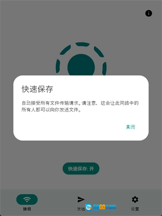 接收设备会立刻弹出接收提醒,点击“同意”就能启动接收流程。要是开启了“快速保存”功能,还能做到无人看管自动接收,效率直接提升一倍!