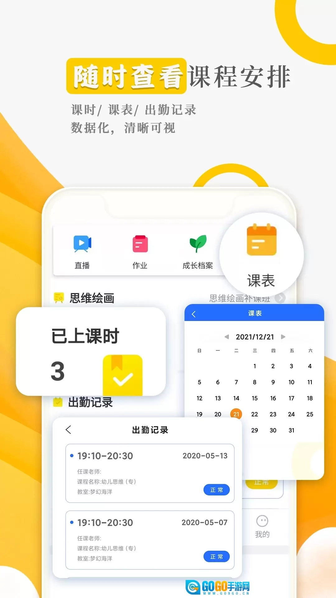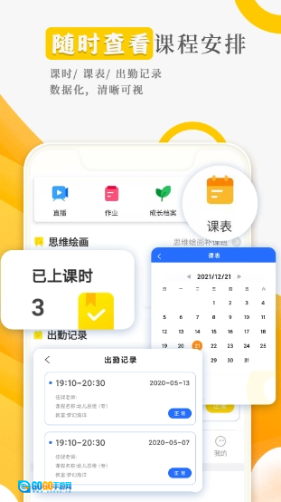 家校互通 成长档案、课表、作业出勤记录一目了然。
