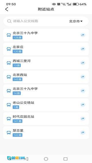 2、直接在搜索区域查找附近站点,就能同步查看公交线路。