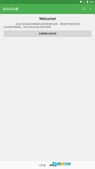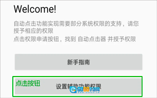 1、启动自动连点器应用,找到“设置辅助功能权限”这一选项,然后点击该选项进入相关设置界面。