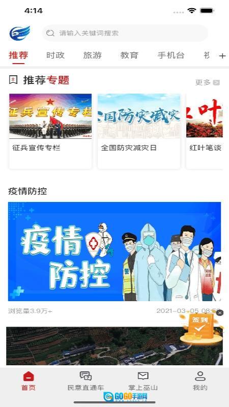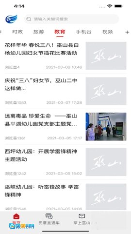 巫山是一款实用的本地服务软件,专门为巫山本地用户构建的便民平台。软件涵盖了时政、旅游、教育、医疗等诸多领域的新闻资讯,设有丰富多样的板块,用户能够及时获取最新的新闻动态,知晓时事变迁。