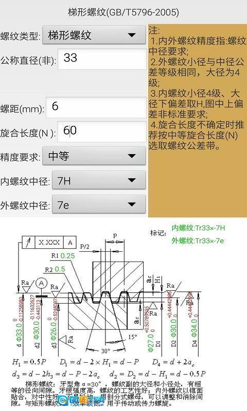 提供螺纹规格、图纸绘制、精度要求、旋合长度、计算公式等工具。