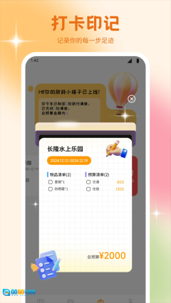 1、打卡印记:用户可在线添加旅游打卡信息,以此标记重要的旅游景点及相关内容。