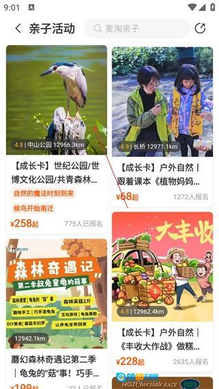 在首页找到【亲子活动】分类选项并点击,即可进入亲子类活动的列表页面。