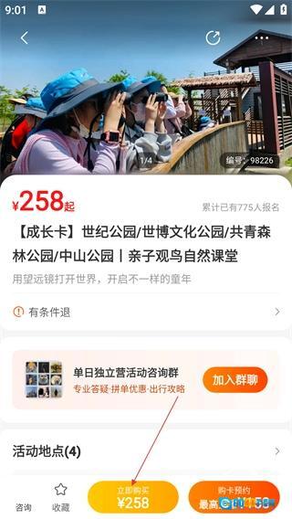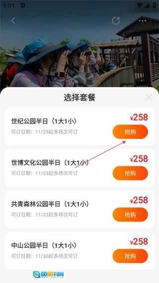 在套餐选择页面,挑选好对应场次的套餐(例如“世纪公园半日”这类),接着点击【抢购】按钮,就能完成该活动的预约。