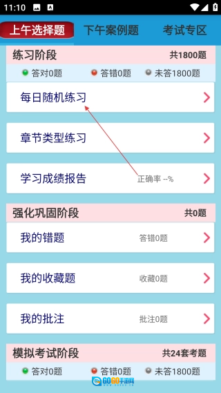 在练习页面,点击【每日随机练习】选项,即可进入当天的习题练习界面。