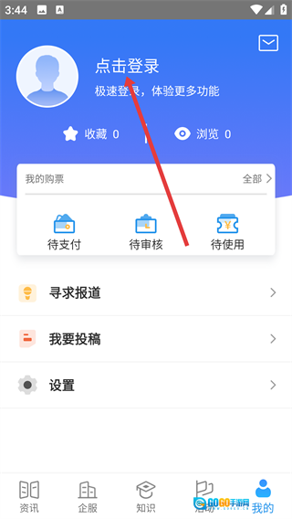 2、在“我的”页面里,点击【点击登录】按钮就能进入登录流程,此页面另外还设有【我的购票】等功能选项。