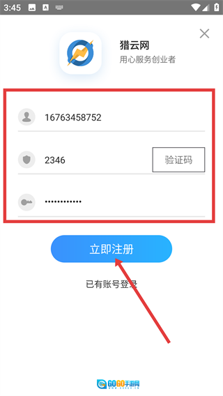 4、在注册页面按顺序填写【手机号】、【验证码】、【密码】的信息后,点击【立即注册】按钮即可完成账号注册。