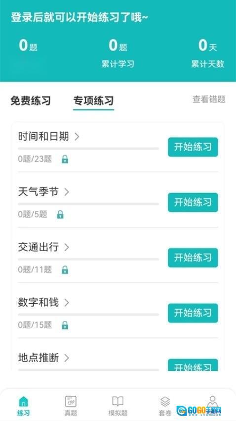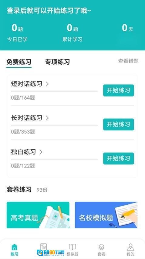 4、登录完成后,返回首页并点击“开始练习”按钮,就能开展听力练习了。